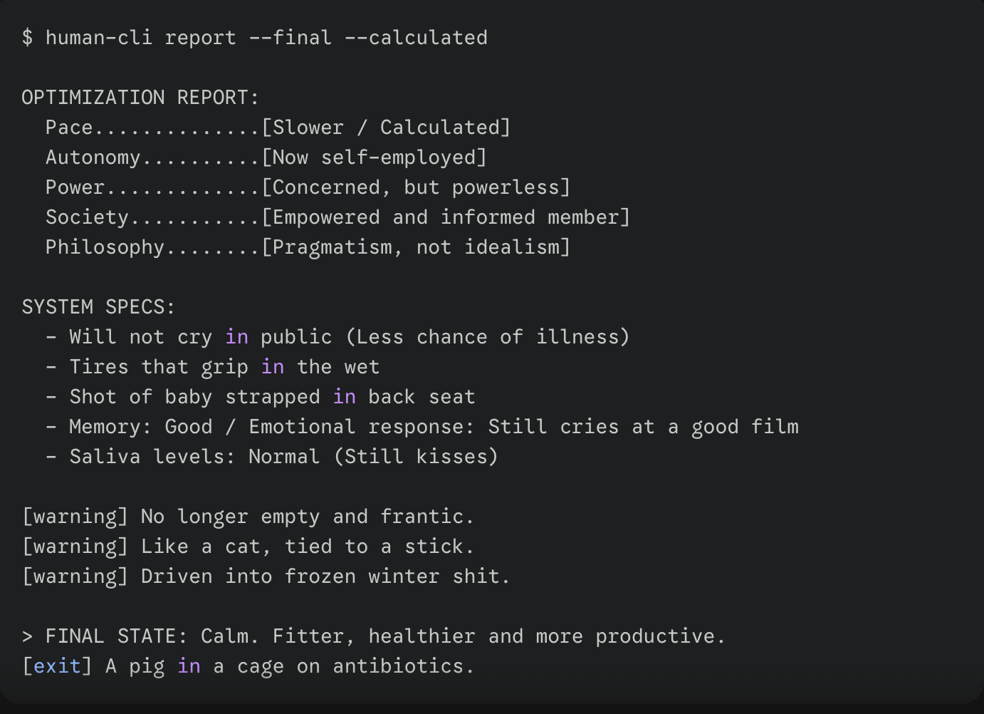- Rendimiento y latencia. Las interfaces web son lentas por definición (carga de assets, animaciones, esperas de renderizado). En la terminal no hay nada que decorar; el flujo de datos es directo y la ejecución es inmediata.