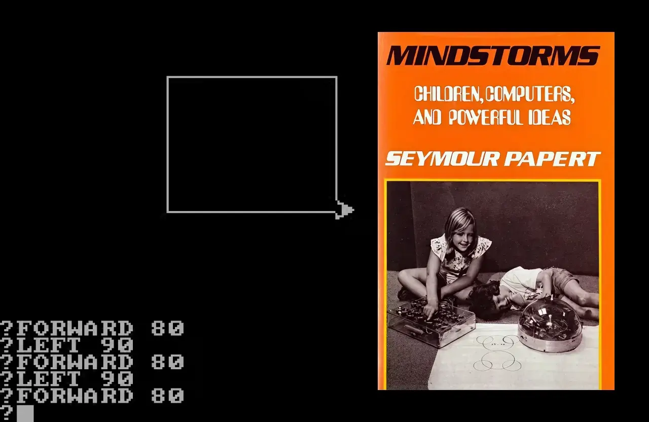 La tortuga de Papert fue, en sus inicios, un robot físico que dibujaba sobre papel respondiendo a comandos de teletipo. ¡Imaginad la emoción de aquellos niños al ver un robot que cobraba vida con sus órdenes! Pero a principios de los 70 se transformó en la figura triangular flotante en la pantalla que la mayoría recordamos. Los comandos eran sencillos y directos: