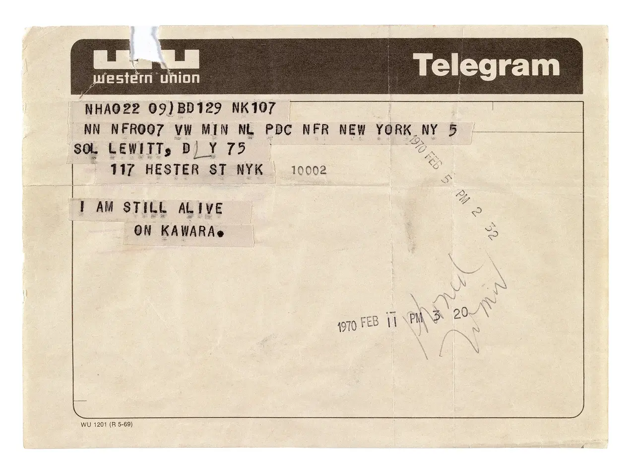 La serie «I Am Still Alive» de On Kawara consta de casi novecientos telegramas enviados a amigos y colegas, todos con esta misma declaración. Lo que en los años setenta surgió de la mano de Kawara como un acto poesía conceptual, una forma de reclamar la soberanía sobre su propia existencia ha mutado hoy en una necesidad social mediada por la tecnología. Porque si Kawara usaba el telegrama para afirmar su existencia por voluntad propia, en la China actual ha surgido una herramienta que te obliga a hacerlo por pura supervivencia.